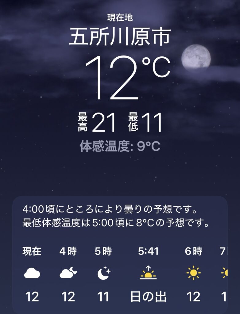 昨日の夜も気温が16℃くらいで全然寒くなかった