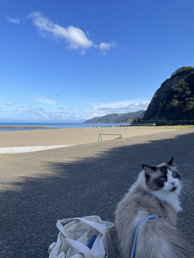 マルと海岸沿いを朝ンポしました