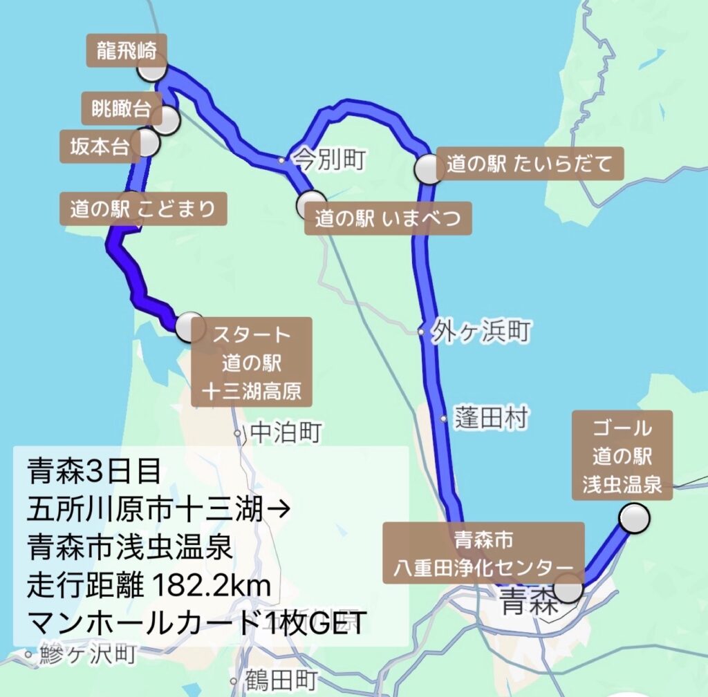 今日は十三湖から龍飛岬を周って青森市へ向かうルート