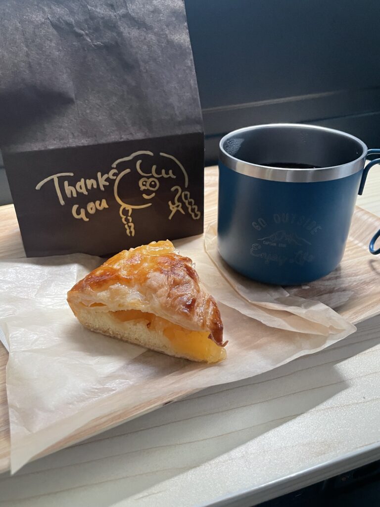 車の中でコーヒーと一緒に頂く