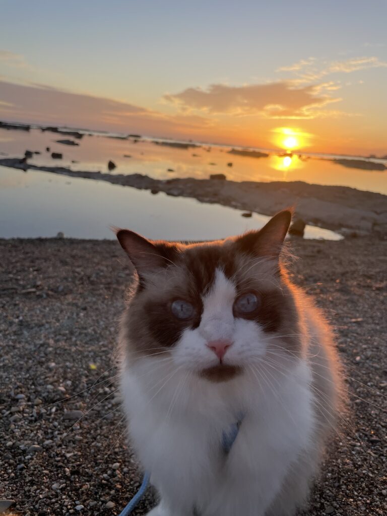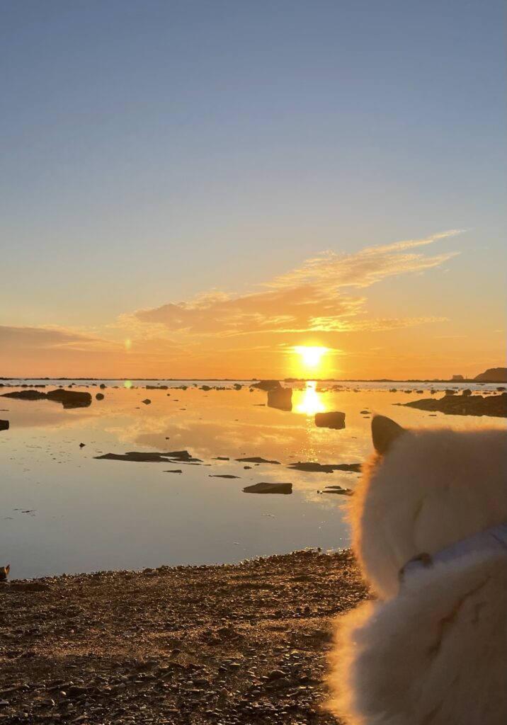 マルと一緒に夕日を見る