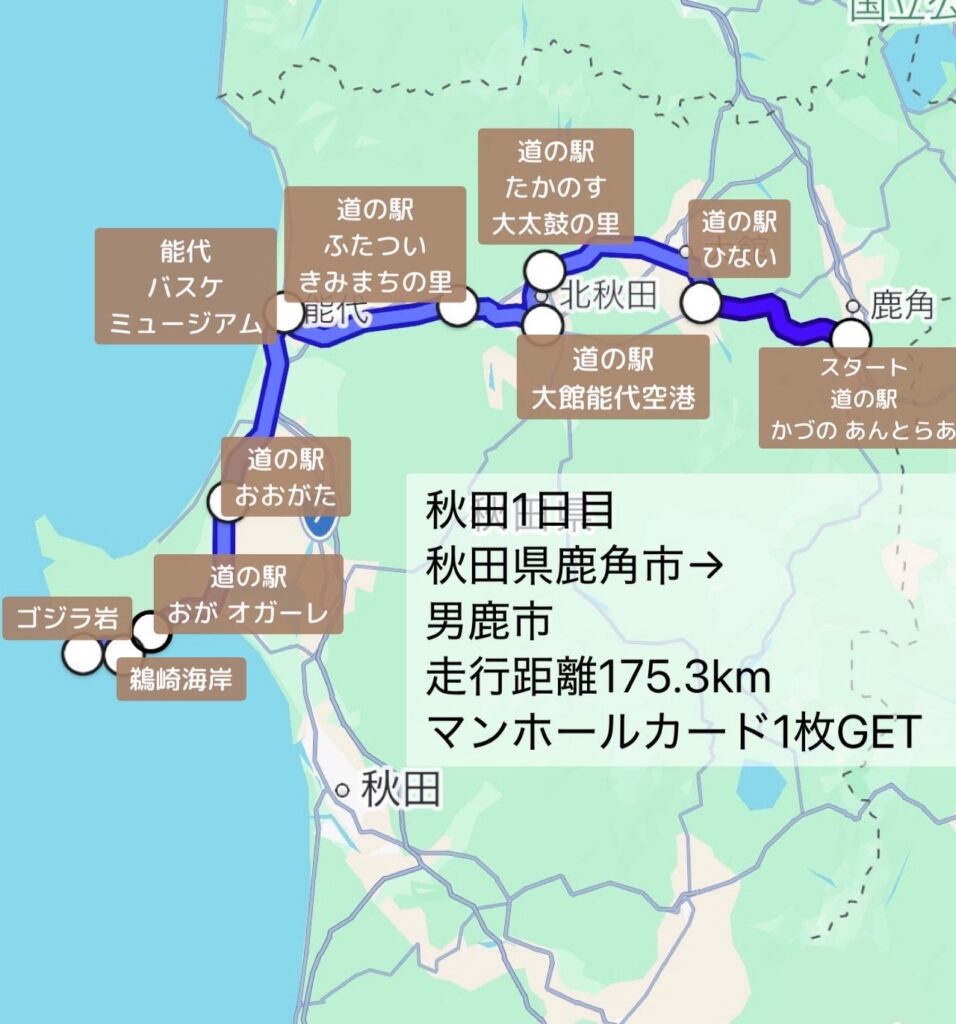 ひない→たかのす→能代空港→ふたつい→おおがた→男鹿と道の駅巡り