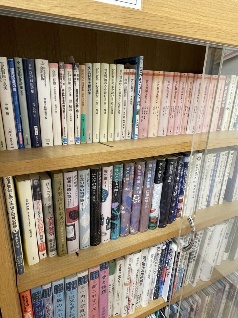 自由に読める本棚があって宮沢賢治全集があった!