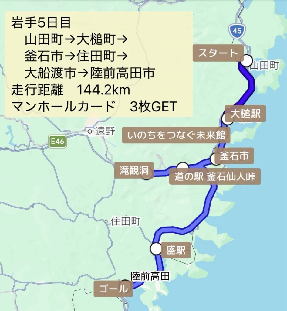 岩手5日目で既にマンホールカード16枚も集めてしまったのでやっぱり走りすぎでしょうね・・