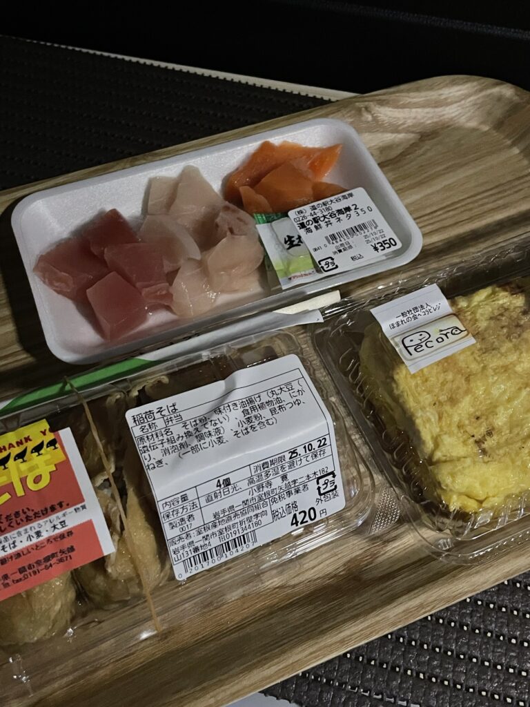 『道の駅むろね』で買った稲荷蕎麦と卵焼き